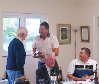 Following a comprehensive buffet lunch provided by a small group of Herdman members, Wally Close made presentations to the following: to overall winner, David Todd (the winner of the inaugural tournament back in 2014) the Herdman Claret Jug; to Andy Hearnshaw, the Wally Close trophy for ‘Nearest the Pin’, and the three ladies who played: Sally Bowles, Jo Goodwin and Jane Willing were presented with gifts of golf balls. Jeff Moore also received a gift for managing to play off the same tee as the ladies….